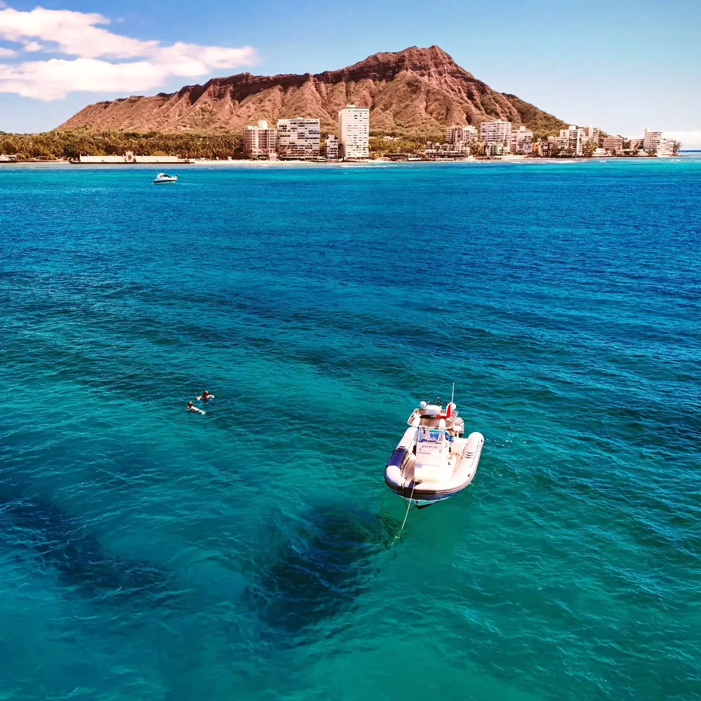 Fast and fun adventure sightseeing and private snorkeling tours in Hawaii. Escape the crowds and join us on private cruise you won’t soon forget. Based on Oahu’s south shore in Waikiki, we go faster and farther than anyone else in town, offering spectacular coastal sightseeing, incredible wildlife (sea turtles, fish, dolphins, and whale watching—in season), snorkeling, and exclusive tiki bar dock-n-dine cruises.